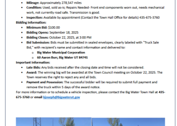 PUBLIC NOTICE Big Water Planning & Zoning Commission Meeting Cancellation Original Meeting Date: Monday, September…
