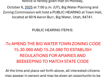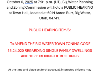 Big Water Municipal Town Council Notice of Public Hearing Notice is hereby given that on…