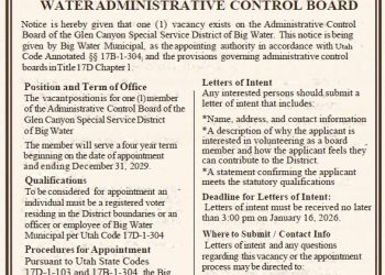 There will be a vacancy on the Glen Canyon Special Service District of Big Water…