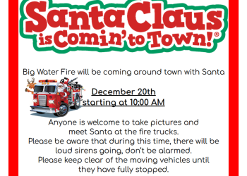 Big Water Fire will be coming around town with SantaDecember 20thstarting at 10:00 AMAnyone is…