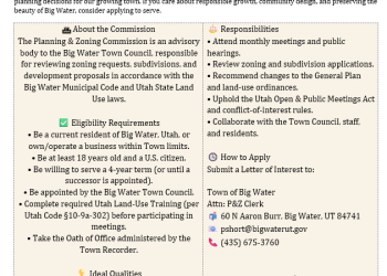 Town of Big Water, Utah NOTICE OF VACANCY Planning & Zoning Commission Serve Your Community…