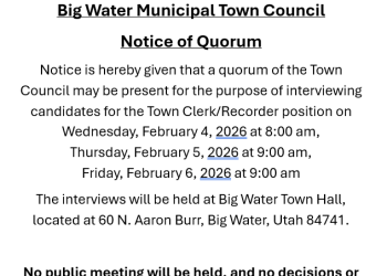 PUBLIC NOTICE Big Water Municipal Town Council Notice of Quorum Notice is hereby given that…