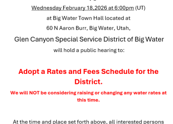 Glen Canyon Special Service District of Big Water NOTICE OF PUBLIC HEARING Notice is hereby…