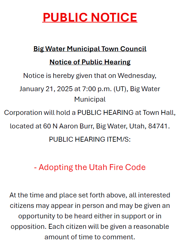 January 21, 2025 at 7:00 p.m. (UT), Big Water Municipal